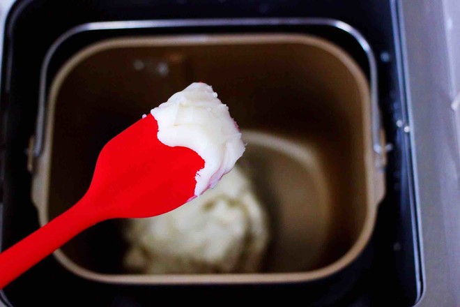 3.一個和面程序后,加入豬油再來一個和面程序,加了豬油的花卷,味道更香濃,花卷更蓬松柔軟筋道。