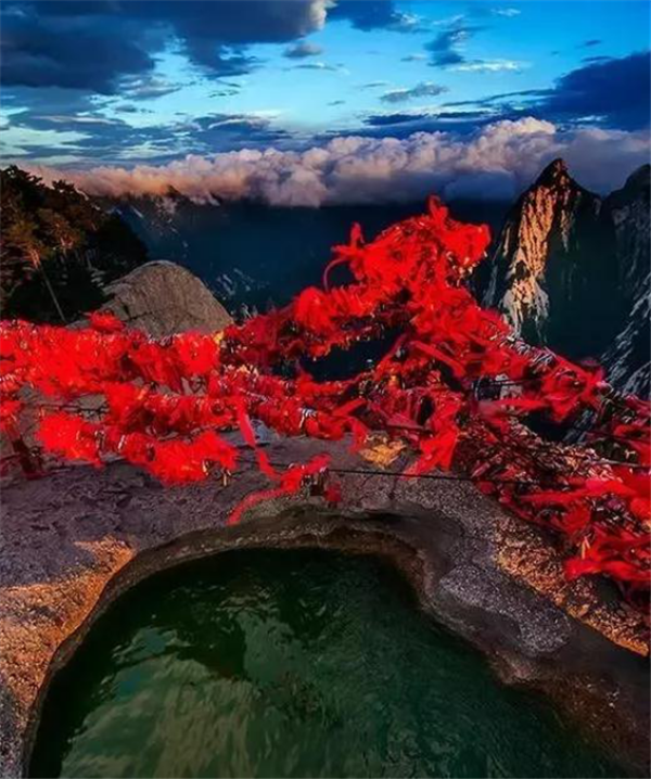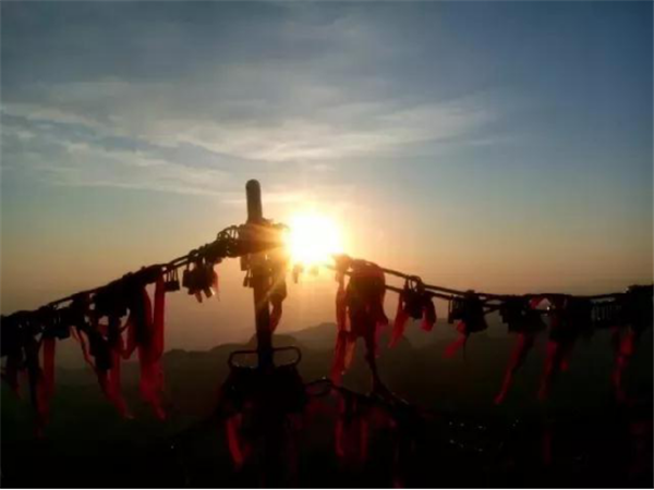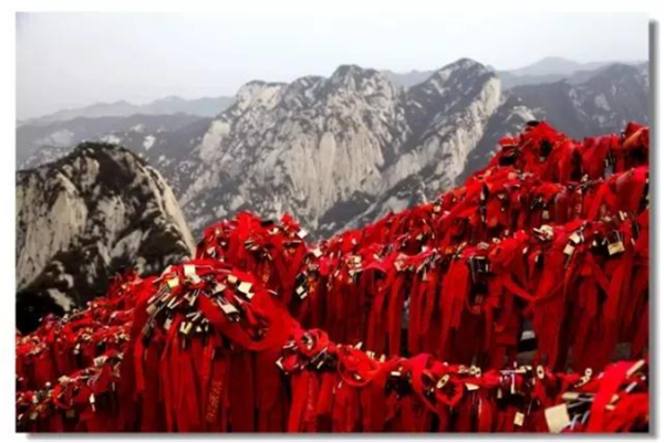 華山是一座愛情的殿堂,華山上的愛情故事悲烈、凄美而感人。我們曾經(jīng)為世界上許許多多的愛情故事所感動(dòng)。其實(shí),發(fā)生在華山上的愛情故事一樣讓人的心情無法平靜。眾所周知的神話傳說《寶蓮燈》中,三圣母為了愛情,被二郎神巨石壓在華山頂上;弄玉為了愛情,逃離安逸的生活,與蕭史雙雙來到華山,琴瑟合鳴;漢臣王咸不畏艱險(xiǎn),到華山尋找賢妻南陽公主等等這些愛情故事,感天動(dòng)地,流傳不衰,不知讓多少人為之贊嘆。也許是讓華山上這些動(dòng)人的愛情故事所感染,不知從什么時(shí)候開始,在代表著堅(jiān)實(shí)連接的一串串鐵鏈上,游人掛上了閃閃的金鎖,把矢志不渝的愛情鎖在華山上,在華山的見證下,祝愿自己的愛情如同華山一樣永遠(yuǎn)不會(huì)改變。