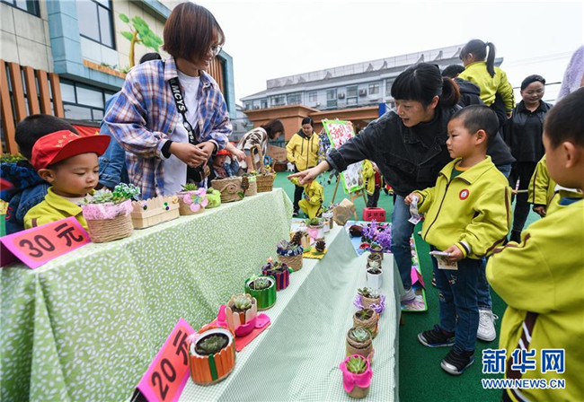 當(dāng)日,浙江省長興縣畫溪街道包橋中心幼兒園舉辦校園義賣節(jié)。10多個攤位上擺放著家長和孩子一起用廢舊的玻璃瓶、雪糕棍、紙盒、紐扣等廢舊材料制作而成的小木屋、迷你小盆栽、紐扣花束、風(fēng)車等手工作品,孩子們以班級為單位進(jìn)行手工作品義賣,所得款項(xiàng)將全部用于社區(qū)公益環(huán)?;顒?。主辦方介紹,希望通過這樣的活動,倡導(dǎo)廢物利用和綠色低碳的生活理念。