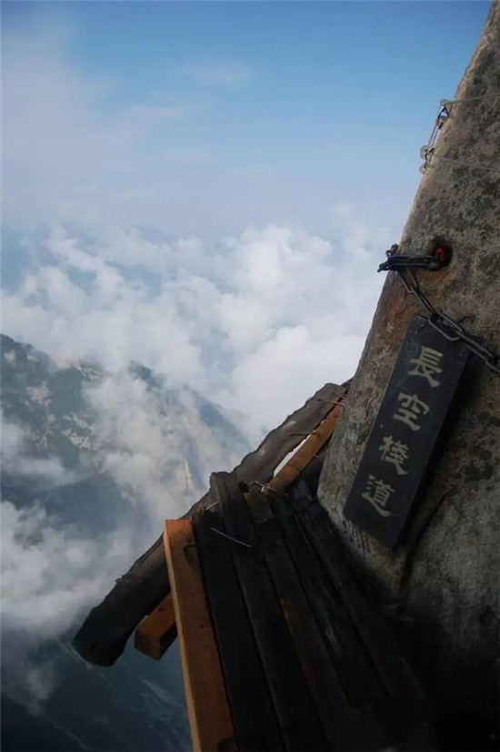 如今的華山險峻依然,但已經(jīng)開鑿了上下兩條棧道,所以觀感上不變,但行走已經(jīng)沒有多少難度了。