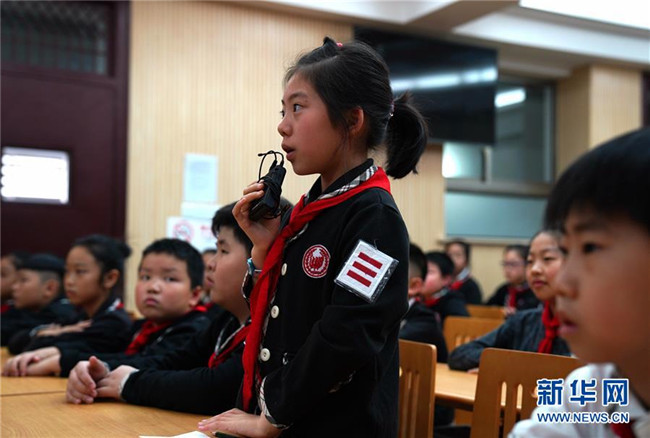 5月13日,一名學生在科普直播課上提問。新華社記者 張建松 攝