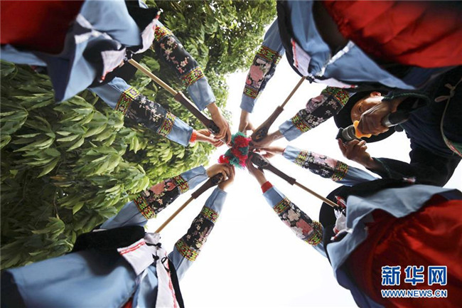 5月14日,在畢節(jié)市黔西縣協(xié)和鎮(zhèn)立新村立新小學(xué),孩子們在老師的指導(dǎo)下學(xué)習(xí)蘆笙。新華社發(fā)(周訓(xùn)超 攝)