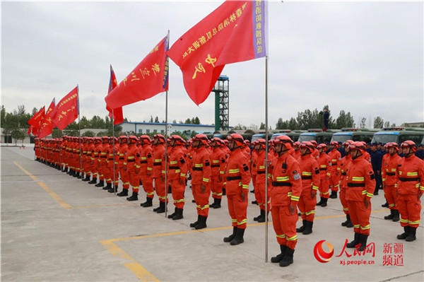 “新疆作為拱衛(wèi)祖國西北邊陲生態(tài)安全的最后一道防線,森林面積802.23萬公頃,森林覆蓋率僅為4.87%,生態(tài)環(huán)境十分脆弱。組織‘百車千人萬里行’大練兵、大勘察、大宣傳活動,一方面是把隊伍拉到陌生環(huán)境和任務(wù)一線,全面檢驗隊伍能否經(jīng)受得住長途奔襲、連續(xù)作戰(zhàn)的考驗,是否能夠在野外條件下拉得出、供得上、打得贏,打牢隊伍能力素質(zhì)基礎(chǔ);另一方面是準(zhǔn)確收集掌握全疆任務(wù)數(shù)據(jù),有效提升全民防火意識,切實為保護(hù)新疆生態(tài)安全作出積極貢獻(xiàn)。”新疆森林消防總隊總隊長韓九龍說。