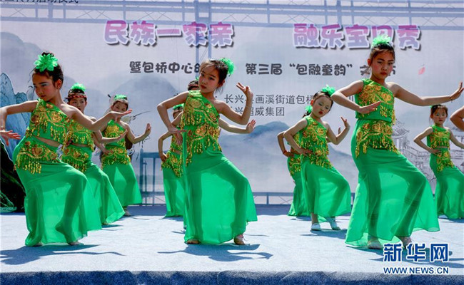 當(dāng)日,浙江省長(zhǎng)興縣包橋幼兒園舉辦“民族一家親”活動(dòng),師生家長(zhǎng)一同表演舞蹈,展示民族服裝,迎接即將到來(lái)的“六一”兒童節(jié)。據(jù)悉,該幼兒園一半以上的孩子來(lái)自省外,其中不少是少數(shù)民族兒童。 新華社記者 徐昱 攝