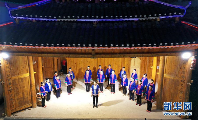 5月27日晚,在廣西柳州市三江侗族自治縣良口鄉(xiāng)燕茶村,吳純娟與村民在戲臺上排練侗族大歌。 今年42歲的吳純娟是廣西柳州市三江侗族自治縣文化館的一名文藝輔導員。她從小喜歡唱歌,工作后接觸并喜歡上侗族大歌,2005年起專門拜師學唱侗族大歌。如今,侗族大歌成為她主要輔導和傳承的音樂之一。今年3月中旬,她成為三江縣良口鄉(xiāng)燕茶村一名駐村工作隊員,侗族大歌是她扶貧的法寶。 燕茶村位于侗鄉(xiāng)大山深處的山腰上,村民們雖然熱愛歌舞,但卻無人會唱侗族大歌。吳純娟進村后,當即在村里開設了侗族大歌免費培訓班,利用晚上及其他工作之余的時間教村民唱侗族大歌,受到村民歡迎。如今,燕茶村專門成立“侗族大歌文藝隊”,隊員從一開始的20人迅速發(fā)展到33人。村部會議室、村里的戲臺、還有山上的千畝茶園……他們的歌聲幾乎傳遍了燕茶村的每個角落。 “這段時間,吳老師還利用休息時間教學校老師和學生唱侗族大歌。”燕茶村燕子小學老師楊雪連說,學校里從來沒有音樂老師,吳老師在學校里開班,師生們學習熱情也非常高。 吳純娟說:“每首侗族大歌歌唱的都是自然、勞動和愛情之美,傳承民族文化的同時,我更希望激發(fā)貧困山區(qū)群眾對美好生活的向往,提高自信,共同脫貧致富。”據(jù)了解,侗族大歌是侗族地區(qū)一種多聲部、無指揮、無伴奏、自然和聲的原生態(tài)音樂。2005年,侗族大歌被列入我國第一批非物質文化遺產名錄,2009年被列入世界人類非物質文化遺產代表作名錄。