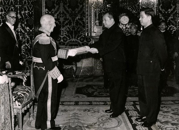 當(dāng)時(shí)的西班牙正處在弗朗哥統(tǒng)治時(shí)期。當(dāng)共產(chǎn)黨領(lǐng)導(dǎo)的中國(guó)外交官來(lái)到了西班牙,當(dāng)中國(guó)在西方的封鎖圈中與西班牙建交,當(dāng)五星紅旗在馬德里城頭升起的時(shí)候,整個(gè)西班牙、整個(gè)歐洲、整個(gè)世界都為之震驚了。