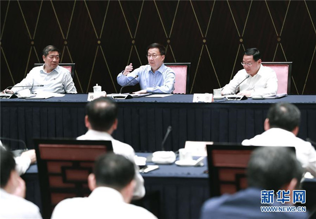 6月3日,中共中央政治局常委、國務院副總理、推動長三角一體化發(fā)展領導小組組長韓正在上海主持召開推動長三角一體化發(fā)展領導小組會議。 新華社記者 龐興雷 攝