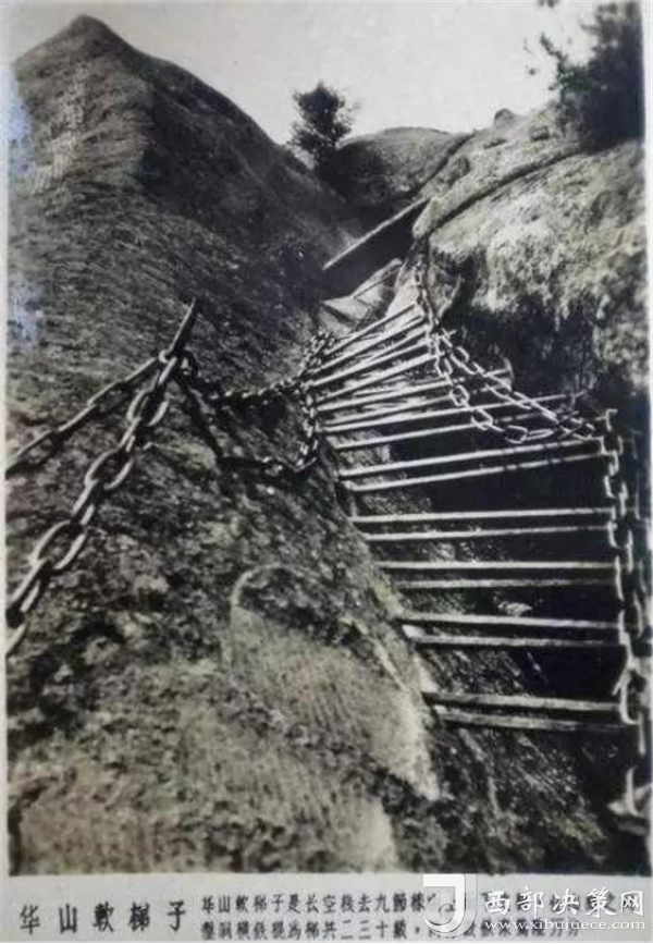 明代“后七子”之一的李攀龍《太華山記》記述:“出南天門向西就是棧道,棧雖有銅柱鐵索攔護(hù),然闊不盈尺。行二十余丈方至盡頭。下折為井,高約三丈,旁出復(fù)為棧……”