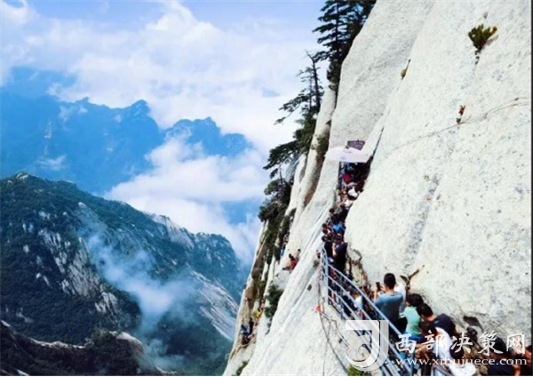 這是一座非常難以攀登的山,公元7世紀(jì)前,幾乎無人登頂,后來,道士們鑿出了條小路,這就是民間說的“自古華山一條路”。