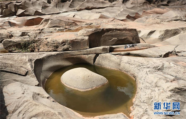 這是6月16日拍攝的四川省會東縣鲹魚河鐵柳鎮(zhèn)火石村段的壺穴地貌。新華社記者江宏景攝