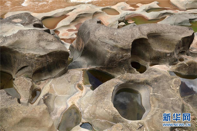 這是6月16日拍攝的四川省會東縣鲹魚河鐵柳鎮(zhèn)火石村段的壺穴地貌。