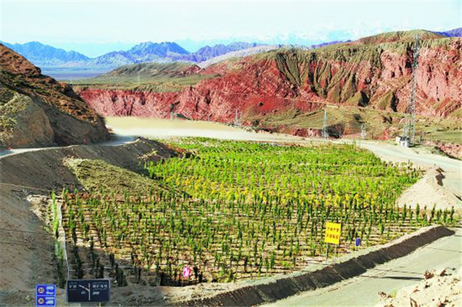 新疆紫金鋅業(yè)在礦區(qū)內新植的樹苗正茁壯成長(攝于6月3日)。肖鐵龍攝