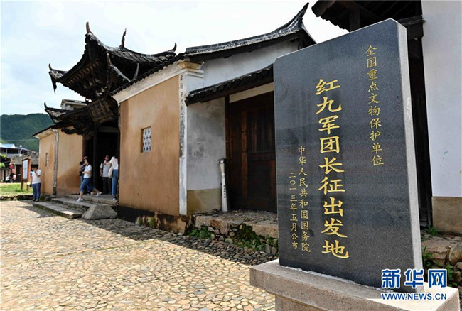 中復村觀壽公祠前,“紅九軍團長征二萬五千里零公里處”石碑靜立無聲。