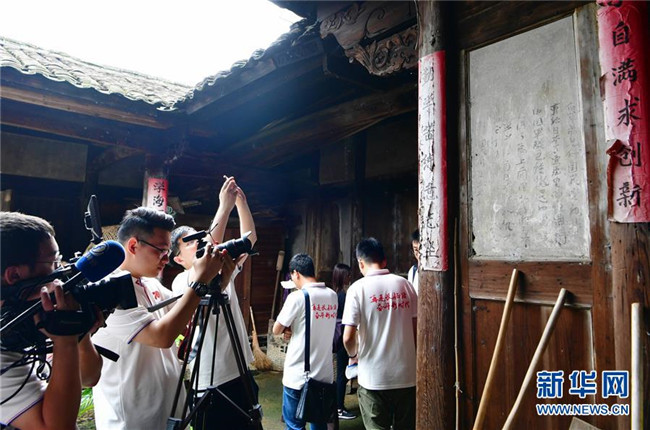 6月17日,在長汀縣南山鎮(zhèn)中復村的觀壽公祠,媒體記者在重溫當年紅軍長征前的場景。 新華社記者魏培全攝