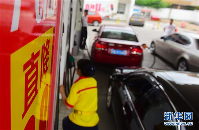 6月25日,江蘇省無錫市一加油站工作人員在給車輛加油。新華社發(fā)(還月亮 攝)
