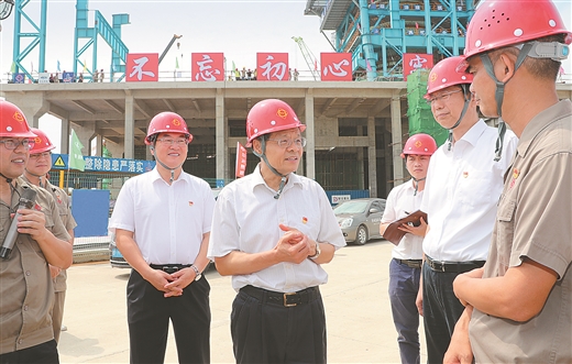 7月1日,自治區(qū)主席陳武深入防城港市,就金屬材料工業(yè)高質(zhì)量發(fā)展情況進行調(diào)研。這是在柳鋼防城港鋼鐵基地項目施工現(xiàn)場,陳武仔細詢問項目建設(shè)進度和配套碼頭建設(shè)情況。 記者 黃 克/攝