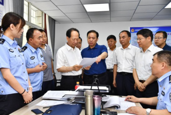 7月3日,石泰峰來到吳忠市利通區(qū)掃黑除惡辦案中心,調(diào)研督辦中央掃黑除惡督導(dǎo)組反饋問題整改落實(shí)工作。