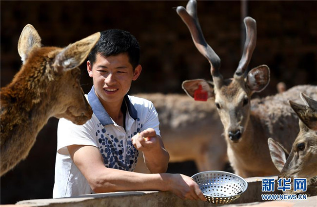 1600多公里之外,延安安塞區(qū)“80后”青年趙洋洋也在鹿舍里忙碌,身旁的梅花鹿膘肥體健。剛剛摘下貧困帽的年輕人雄心勃勃,計劃著用互聯(lián)網(wǎng)把鹿茸產(chǎn)品賣出大山。