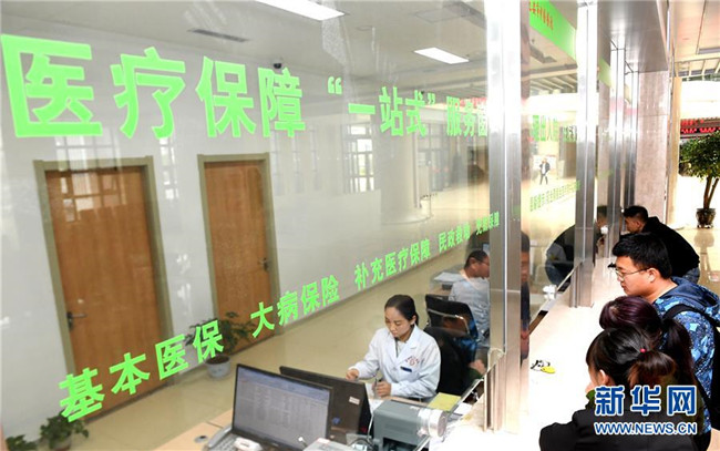 人們在陜西省延安市中醫(yī)醫(yī)院醫(yī)保結(jié)算處辦理業(yè)務(wù)(5月6日攝)。新華社記者 劉瀟 攝