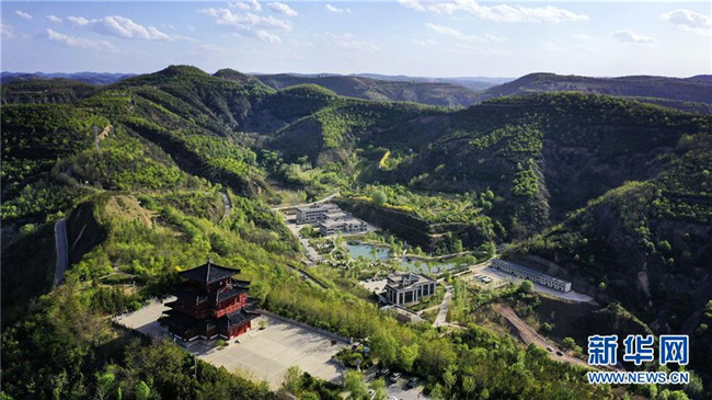 5月11日無人機拍攝的位于延安市吳起縣的退耕還林森林公園。新華社記者 陶明 攝