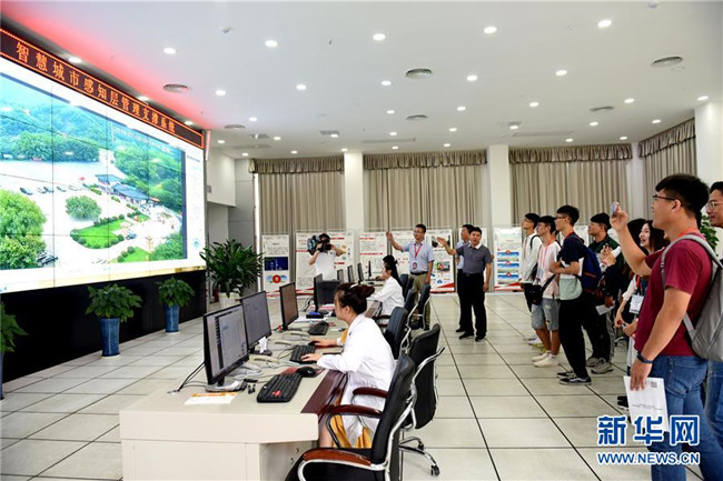 7月9日,大學(xué)生走進(jìn)安徽淮南市高新區(qū)中國鐵塔淮南分公司,了解智慧城市管理支撐系統(tǒng)建設(shè)情況。新華社發(fā)(陳彬攝)