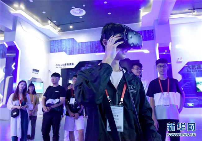 7月9日,大學(xué)生走進(jìn)安徽淮南大數(shù)據(jù)展示中心,通過虛擬現(xiàn)實(shí)設(shè)備,體驗(yàn)現(xiàn)代化井下煤礦開采場(chǎng)景。新華社發(fā)(陳彬攝)