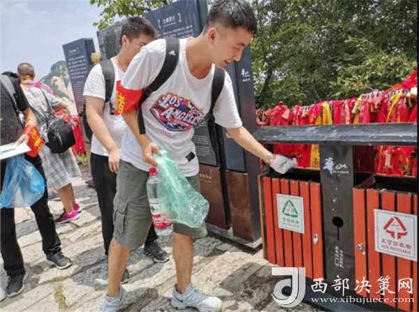 志愿者以實(shí)際行動踐行志愿者精神,宣傳環(huán)保理念。7月12日早晨,即使天空下著雨也沒能阻擋志愿者們對本次公益活動熱情,他們同工作人員一同來到華山景區(qū)開展主題為“相約青春,綠行環(huán)保”的登山撿垃圾環(huán)保公益活動。