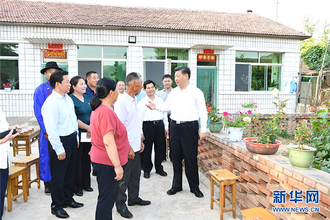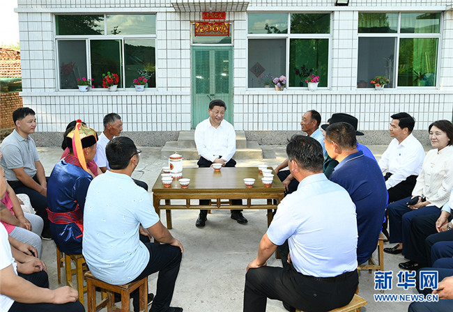 7月15日至16日,中共中央總書記、國家主席、中央軍委主席習近平在內蒙古考察并指導開展“不忘初心、牢記使命”主題教育。這是15日下午,習近平在赤峰市喀喇沁旗河南街道馬鞍山村村民張國利家,同基層干部群眾代表親切交流。 新華社記者 謝環(huán)馳 攝