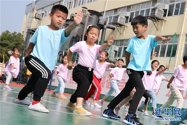 “小候鳥”們在武術(shù)課前做熱身運(yùn)動(dòng)(7月15日攝)。