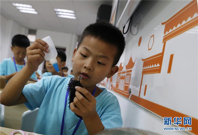 位于上海嘉定區(qū)南翔鎮(zhèn)的南翔工業(yè)開發(fā)區(qū),有許多來自外地的工人。暑假期間,許多小朋友從老家趕來開發(fā)區(qū)跟爸爸媽媽團(tuán)聚。這些“小候鳥”的爸爸媽媽白天要上班,無暇照顧孩子,上海南翔工業(yè)開發(fā)區(qū)實(shí)業(yè)有限公司職工親子工作室從7月初到8月下旬,在工作日為“小候鳥”們安排了豐富多彩的活動(dòng),包括做手工、學(xué)畫畫、練武術(shù)等,讓“小候鳥”們度過一個(gè)文武雙全的暑假生活。 新華社記者 方喆 攝