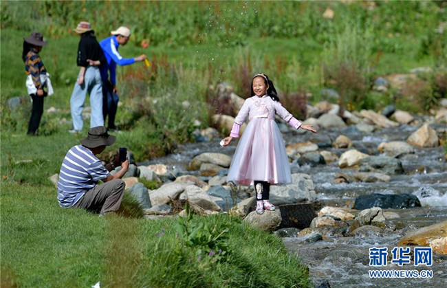 游人在達東村景區(qū)小溪邊玩耍(7月20日攝)。西藏拉薩市柳梧鄉(xiāng)達東村是一個千年古村,也曾是一個貧困村。近年來,依托秀美的自然風光、深厚的歷史文化和淳樸的風土人情,當?shù)卣畬嵤┪幕糜萎a(chǎn)業(yè)精準扶貧,使達東村蛻變成為鄉(xiāng)村旅游勝地。新華社記者張汝鋒攝