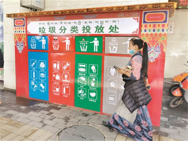 圖為垃圾分類(lèi)投放處。索朗普赤攝