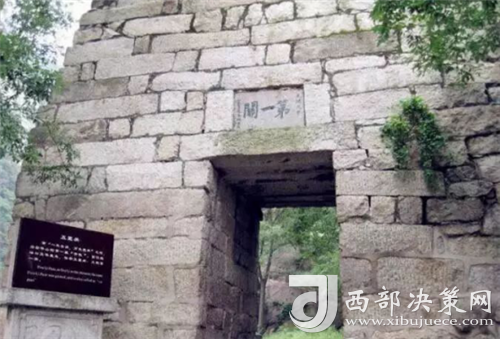 關(guān)內(nèi)石上所刻二字“桃林坪”。相傳陶淵明的《桃花源記》所描寫的“世外桃源”便是出自于這里,清詩人顏光敏有詩云“絕山獻泌奇芳,春深見紅萼。天風(fēng)萬里吹,不向人間落。