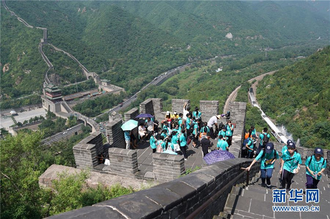 7月21日,參加“2019同心同根萬(wàn)里行”活動(dòng)的香港青少年在北京居庸關(guān)長(zhǎng)城游覽。新華社記者鞠煥宗攝