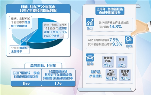原標(biāo)題:25個(gè)省區(qū)市陸續(xù)公布上半年“成績單”:各地經(jīng)濟(jì)運(yùn)行平穩(wěn) 新興動能貢獻(xiàn)突出