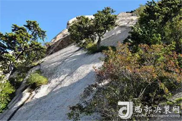 在華山北峰,過千尺幢經(jīng)百尺峽,就到了北峰最著名的老君犁溝。這里最為吸引人的,除卻“犁險(xiǎn)于幢,幢險(xiǎn)而犁突”的殊勝景觀,除卻老君犁溝盡頭陡峭到連山猴都難以逾越的“猢猻愁”,光是崖壁下一口幽深的石洞,就足以讓四海游人紛至沓來。足蹬石窩手?jǐn)堣F索攀上石頂,再走過一個(gè)獨(dú)木橋就到了山洞口。