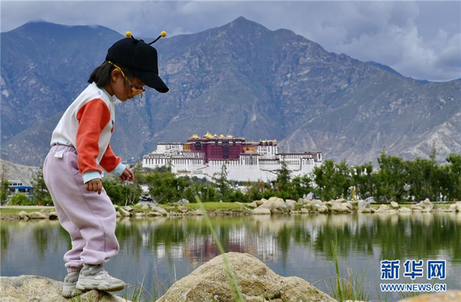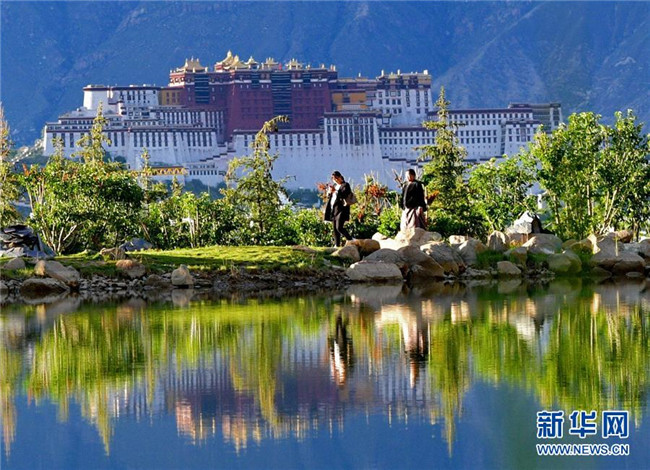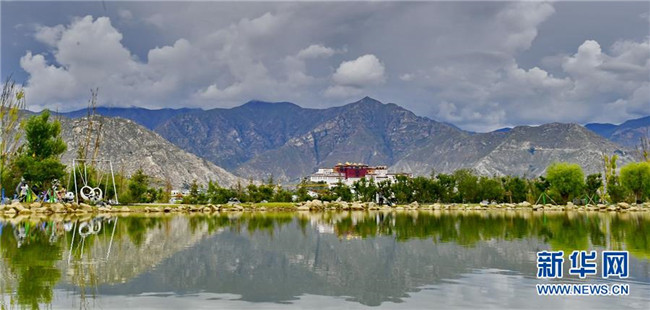 在南山公園湖畔拍攝的布達拉宮風(fēng)光(7月30日攝)。新華社記者 張汝鋒 攝