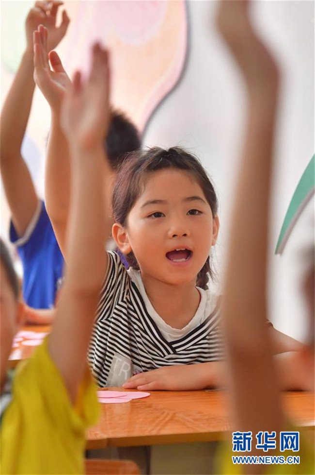 龔慧玲來自融安縣泗頂鎮(zhèn)農(nóng)村,今年隨家人搬進安置小區(qū)。 暑假期間,廣西柳州市融安縣在易地扶貧搬遷安置小區(qū)“老鄉(xiāng)家園”開辦“七彩假期”公益培訓(xùn)班,授課老師除了輔導(dǎo)孩子功課外,還開設(shè)美術(shù)、舞蹈、音樂等興趣課程,豐富孩子們的假期生活。