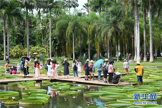 王蓮原產(chǎn)于南美洲熱帶地區(qū),西雙版納熱帶植物園自1963年開(kāi)始引種,經(jīng)過(guò)多年的培育,已成為植物園一張亮麗的名片。每年6月—10月是王蓮的最佳觀賞時(shí)間,不少游客都會(huì)慕名前來(lái),觀賞這種神奇的植物。新華網(wǎng)發(fā)(張嬌嬌 攝)