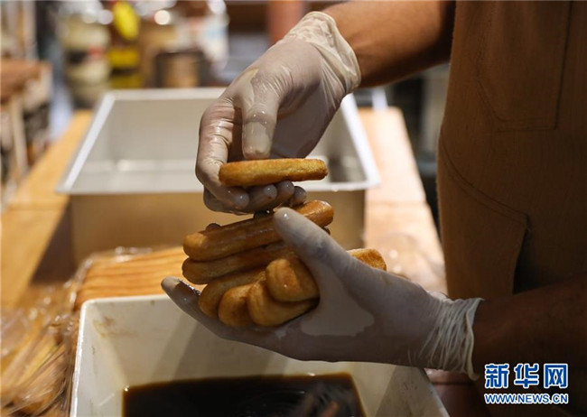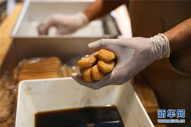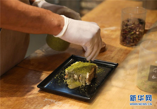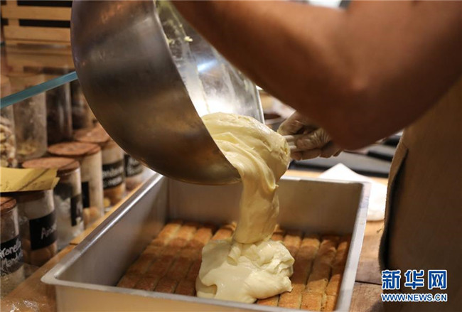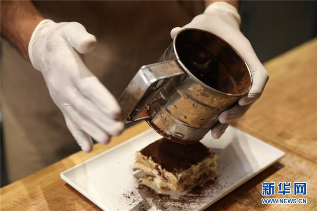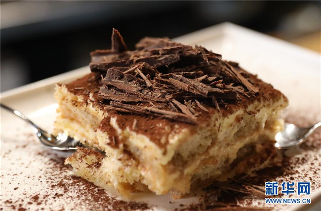 提拉米蘇是意大利傳統(tǒng)甜品,且深受世界各地人民的喜愛(ài)。經(jīng)典的意式提拉米蘇由馬斯卡彭奶酪、手指餅干、蛋黃、咖啡、可可粉等原料制成。浸泡過(guò)咖啡的手指餅與奶酪糊相互疊加,最上層撒上咖啡粉,再灑上一些碎巧克力;挖一勺送入口中,奶酪的豐盈細(xì)滑與濕潤(rùn)的手指餅干的顆粒感混合在一起,甜的滋味剛一涌出便由咖啡的苦來(lái)平衡,即使正餐吃了再多的意大利面也無(wú)法拒絕這樣一道美味的甜品。除了經(jīng)典口味,開(kāi)心果口味,各式水果口味的提拉米蘇也受到越來(lái)越多的歡迎。 新華社記者 程婷婷 攝