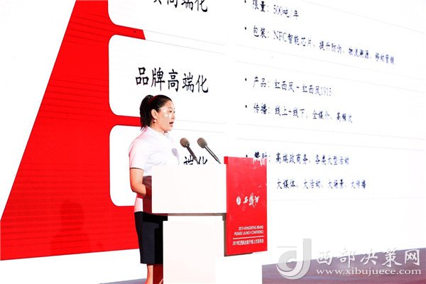 發(fā)布會上,新一代紅西鳳涅槃重生,閃耀登場。紅西鳳是西鳳集團(tuán)首推高端獨立品牌,選五谷、取甘露、釀陳窖、藏酒海、遵古鳳香秘法釀造之藝,呈現(xiàn)了西鳳酒獨具魅力的典型風(fēng)格;一襲正統(tǒng)中國紅,色彩鮮明、熱烈奔放、賦滿活力,展現(xiàn)了其優(yōu)雅、高端、時尚、活力的品牌個性。她圓形瓶底屹立寰宇,寶塔狀瓶身直沖云霄,層層進(jìn)??;酣暢淋漓的中國紅,迸發(fā)出新生的喜悅。“品牌即品質(zhì),品質(zhì)即未來”。
