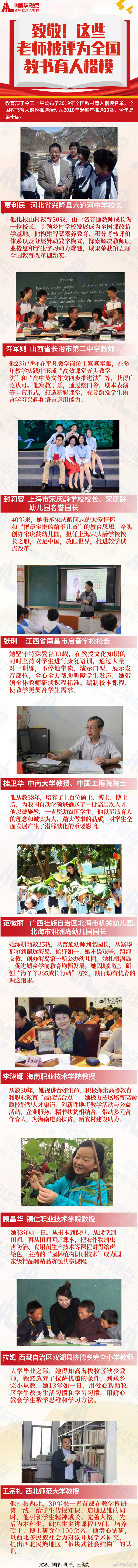 教育部3日公布2019年教書育人楷模名單。10位入選教師涵蓋高教、職教、基教、幼教、特教等各級(jí)各類教育。