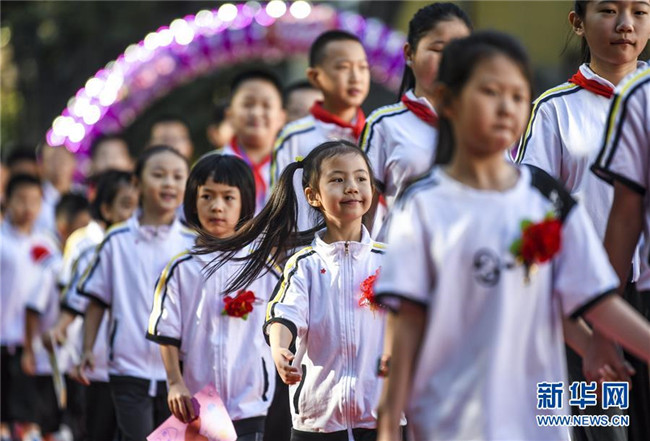 新學(xué)年伊始,新疆教育學(xué)院實(shí)驗(yàn)小學(xué)舉辦主題為“夢(mèng)想從這里啟航”的開(kāi)學(xué)典禮,一年級(jí)新生在六年級(jí)學(xué)生的引領(lǐng)下培養(yǎng)愛(ài)學(xué)校、愛(ài)師長(zhǎng)、愛(ài)學(xué)習(xí)的品德,走進(jìn)校園開(kāi)啟新生活。 新華社記者 王菲 攝