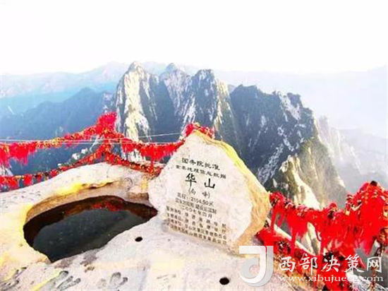 又因峰巔有巨石形狀好似蓮花瓣,古代文人多稱其為蓮花峰、芙蓉峰。西峰為一塊完整巨石,渾然天成。西北絕崖千丈,似刀削鋸截,其陡峭巍峨、陽剛挺拔之勢是華山山形之代表,因此古人常把華山叫蓮花山。西峰南崖有山脊與南峰相連,脊長300余米,石色蒼黛,形態(tài)好像一條屈縮的巨龍,人稱為屈嶺,也稱小蒼龍嶺,是華山著名的險道之一。