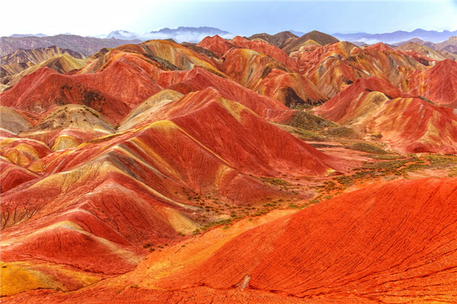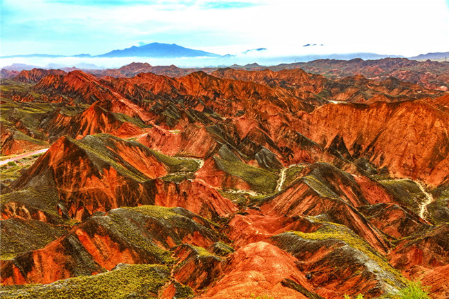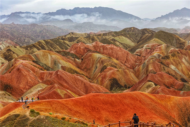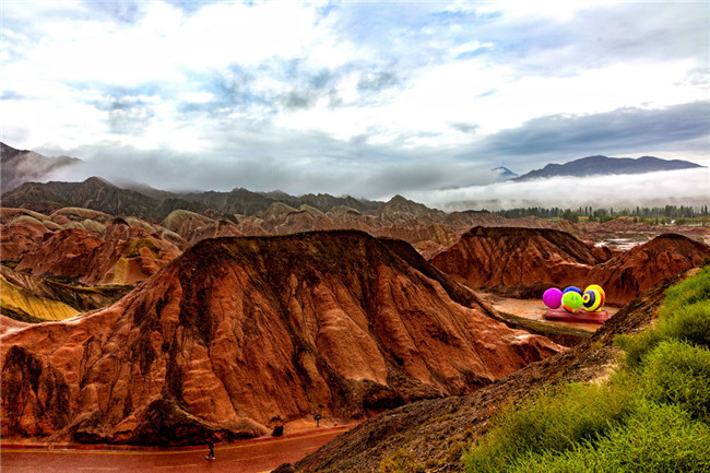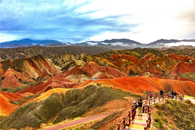 9月9日,甘肅張掖七彩丹霞旅游景區(qū)。一場小雨剛剛飄過,整個景區(qū)如同燃燒了萬年的火焰,更加艷麗、熱烈而磅礴。位于祁連山北麓臨澤、肅南縣境內,距張掖市區(qū)30公里、臨澤城區(qū)20公里,分布面積約50平方公里的七彩丹霞景區(qū),是中國北方干旱地區(qū)發(fā)育最典型的丹霞地貌及國內唯一的丹霞地貌與彩色丘陵景觀復合區(qū)。先后被評為“中國最美的七大丹霞”“中國最美的六處奇異地貌”“世界十大神奇地理奇觀”和全球最刻骨銘心的22處風景之一,現(xiàn)為國家地質公園、國家4A級旅游景區(qū)和省級風景名勝區(qū)。