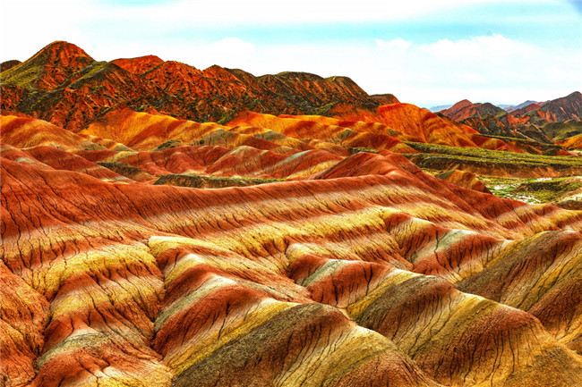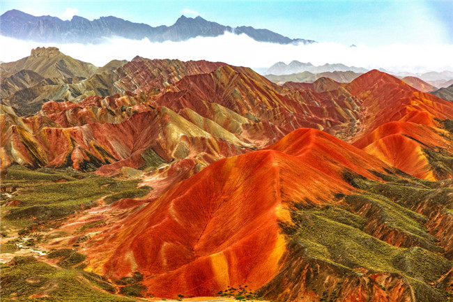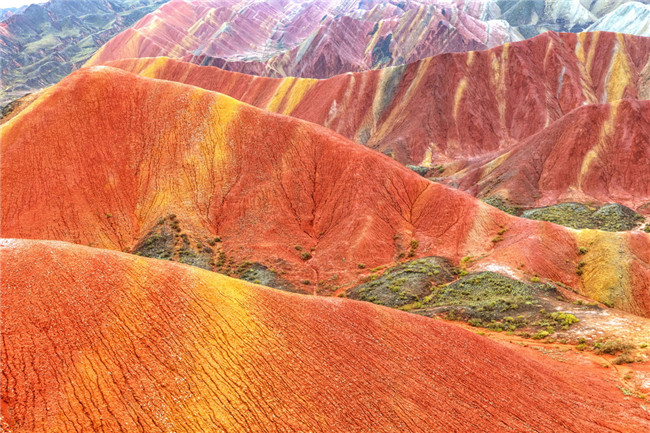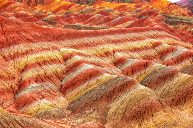 景區(qū)以地貌色彩艷麗、層理交錯、氣勢磅礴、場面壯觀而稱奇,彩色丘陵的觀賞性之強、面積之大冠絕全國,舉世罕見,具有很高的科考和旅游觀賞價值。人民日報記者史家民攝影報道