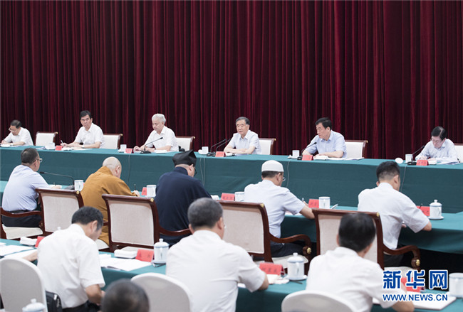 9月9日至10日,中共中央政治局常委、全國(guó)政協(xié)主席汪洋在江西調(diào)研宗教工作。這是9月10日,汪洋在南昌主持召開宗教工作座談會(huì)并講話。新華社記者 王曄 攝