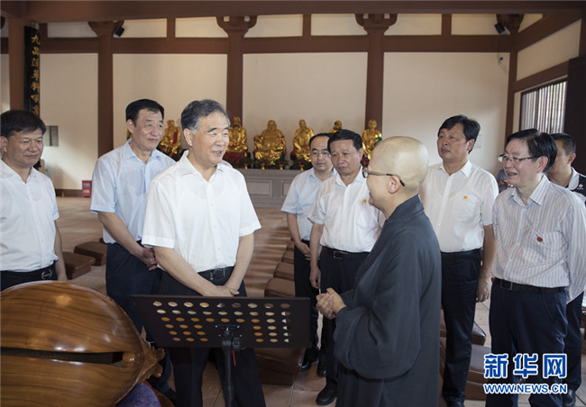 9月9日至10日,中共中央政治局常委、全國(guó)政協(xié)主席汪洋在江西調(diào)研宗教工作。這是9月9日,汪洋在宜黃縣曹山寶積寺與僧人交流。新華社記者 王曄 攝