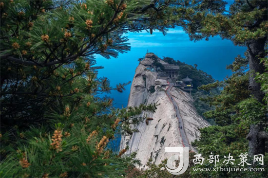 北峰海拔1614米,為華山主峰之一,因位置居北得名。北峰四面懸絕,上冠景云,下通地脈,巍然獨(dú)秀,有若云臺,因此又名云臺峰。唐李白《西岳云臺歌送丹丘子》詩曾寫到:“三峰卻立如欲摧,翠崖丹谷高掌。白帝金精運(yùn)元?dú)?,石作蓮花云作臺。”