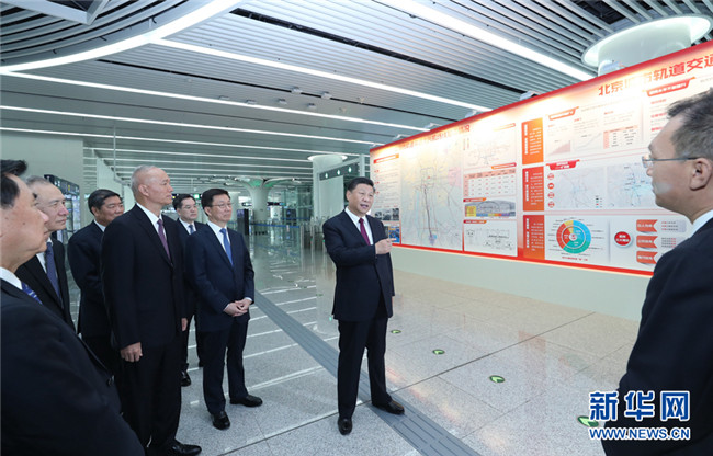 在草橋站進(jìn)站大廳,習(xí)近平結(jié)合展板聽取情況介紹。習(xí)近平強(qiáng)調(diào),城市軌道交通是現(xiàn)代大城市交通的發(fā)展方向。發(fā)展軌道交通是解決大城市病的有效途徑,也是建設(shè)綠色城市、智能城市的有效途徑。北京要繼續(xù)大力發(fā)展軌道交通,構(gòu)建綜合、綠色、安全、智能的立體化現(xiàn)代化城市交通系統(tǒng),始終保持國際最先進(jìn)水平,打造現(xiàn)代化國際大都市。